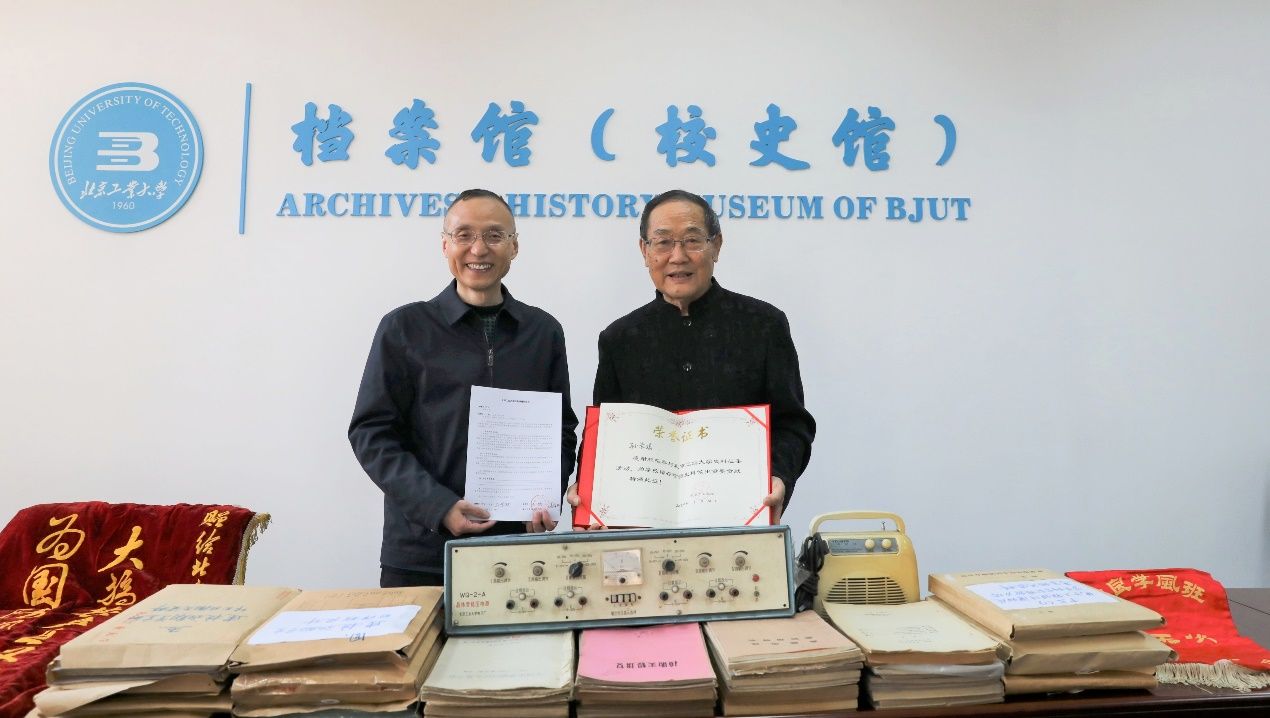 孙老师1962年入职BETVLCTOR伟德在线无线电系(原三系),在职期间承担无线电发送设备、高频电子电路等多门课程的教学任务及实验室的建设工作。他对学校教育教学工作有着深厚的情感,一直珍藏着建校初期的教学资料。此次捐赠包含讲义、考题、课程设计、成绩单等428件纸质档案,以及与学校科研、人才培养相关的电子设备、锦旗等4件实物档案。此次捐赠丰富了校史馆藏,对记录北工大教育教学历史有着重大意义。