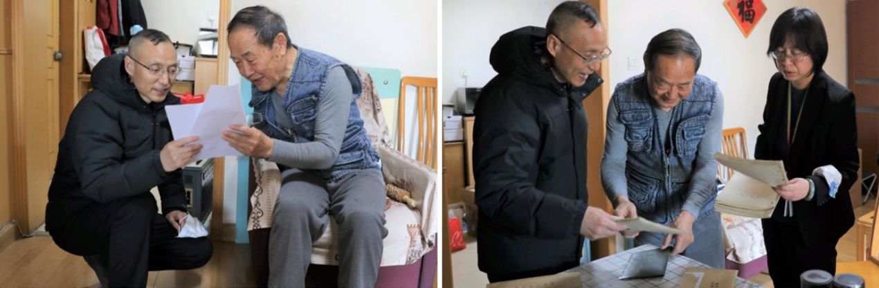 捐赠仪式前一天,夏海州馆长带队一行5人,前往孙老师家了解捐赠物品情况,并亲切慰问了孙老师及其夫人。