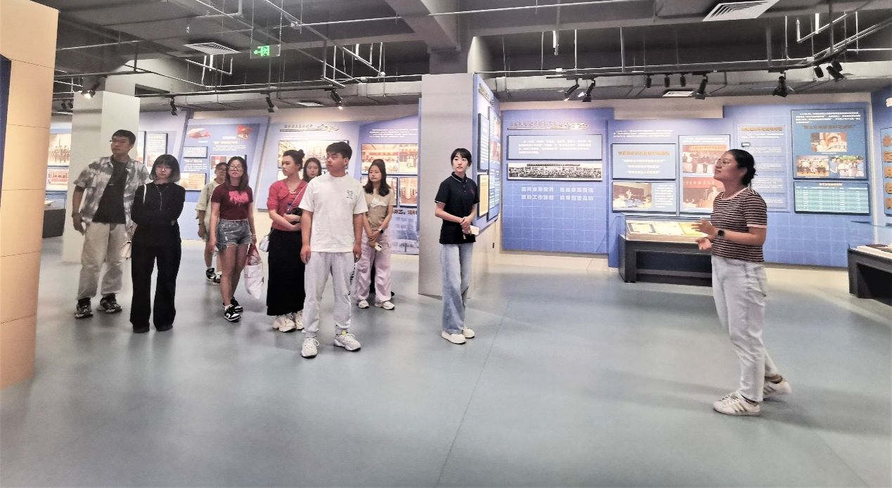 北京航空航天大学校史馆学生讲解员热情地为大家讲述了北航光辉的办学历史。透过展陈的每一张照片、每一件实物以及每一组数据,大家被其中蕴含的“爱国奉献、敢为人先、开放包容、笃行坚毅”精神所深深感染,深刻地感受到校史文化的无穷魅力。此间,两校学生讲解员进行交流学习。