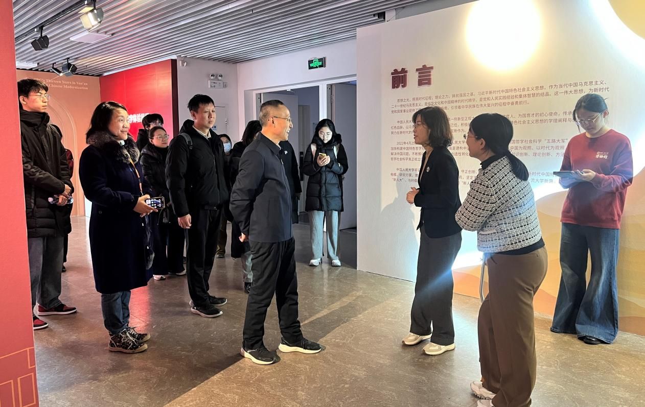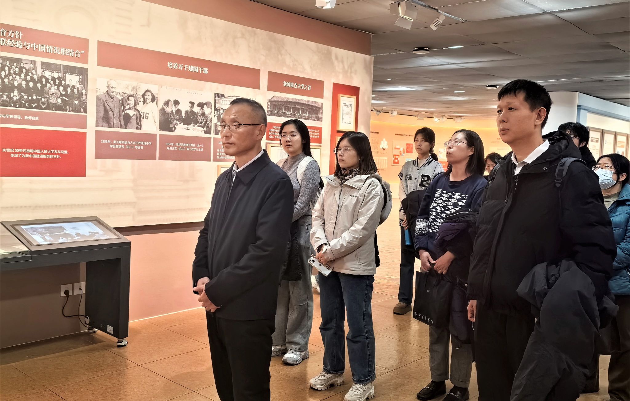 走进了中国人民大学校史展。从陕北公学,到华北联合大学、华北大学,直至今日屹立于人文社会科学前沿的中国人民大学,一幅波澜壮阔的历史画卷在讲解员深情讲述中徐徐展开。大家为中国人民大学“党办的大学让党放心,人民的大学不负人民”的精神品格所震撼。