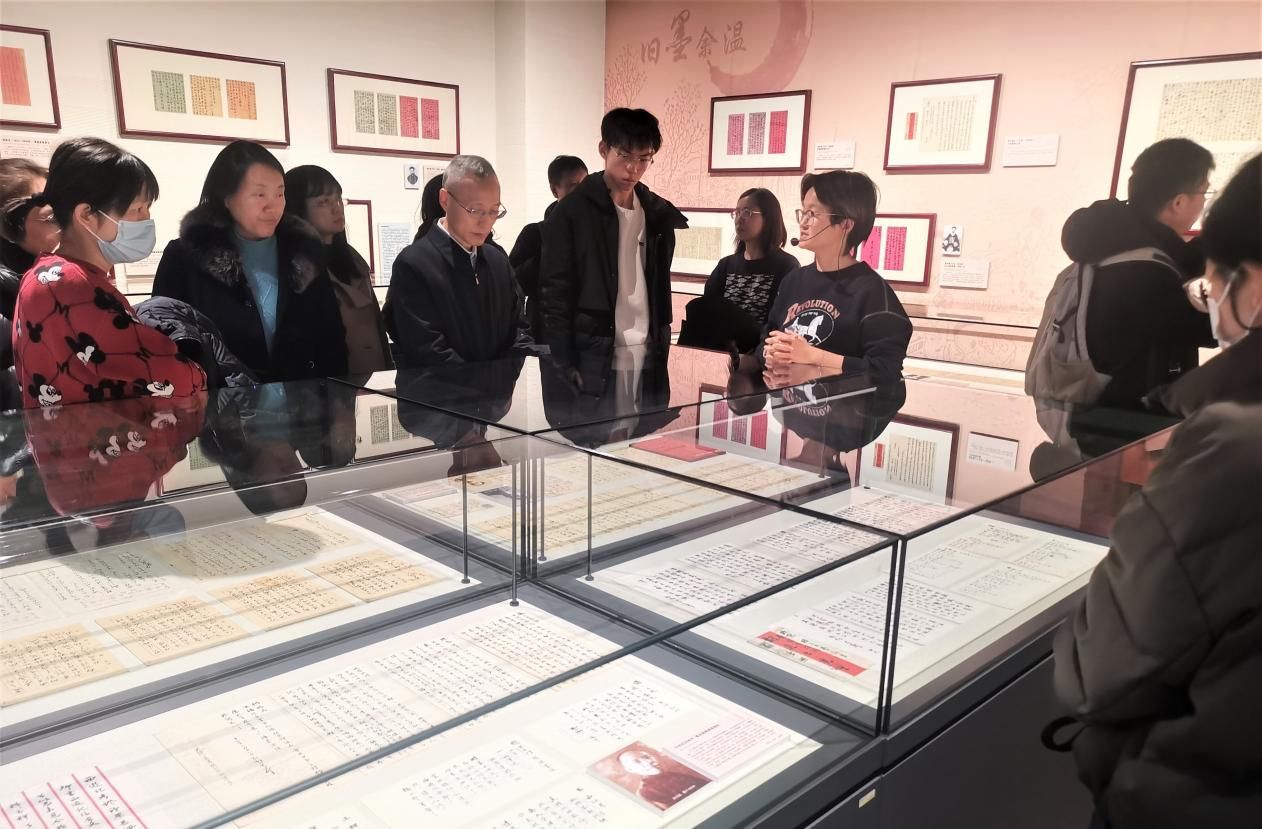 参观“尺翰之美─中国传统家书展”。从古代木牍到近代信札,8万余封家书承载着跨越时空的情感与记忆,字里行间流露出的清廉守正、勤俭节约、责任担当等中华传统美德。学生讲解员饱含深情的讲解,为大家上了一堂生动的作风建设与党性修养课。